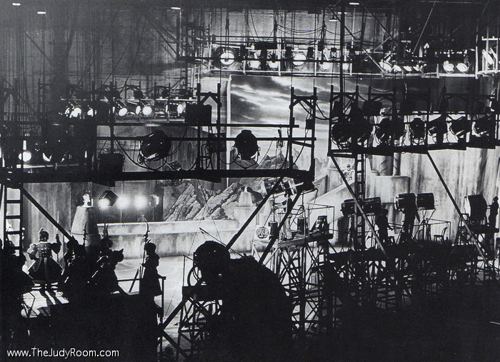 Matte painting of the overhead of the Witch's Castle. The darkened area is where the live set footage would go. This was not used in the final film.