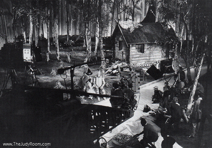 Candid shot of Judy between takes on the cornfield set.