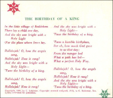 rare insert - cover shown above right, lyrics to "The Birthday Of A King" from