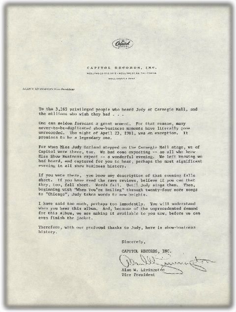a lovely photography of Judy and a letter from Captiol Records