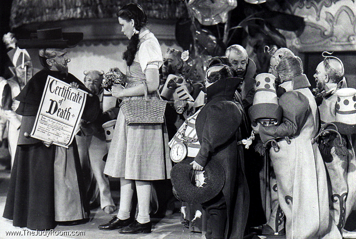Judy Garland relaxes on the set with Munchkin Olga Nardone and Judy's stand-in Bobbie Koshay.