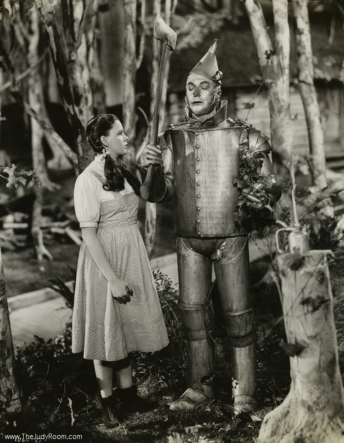 Filming in the Tin Man's Forest. Note the Wicked Witch awaiting her cue on the top of the house.